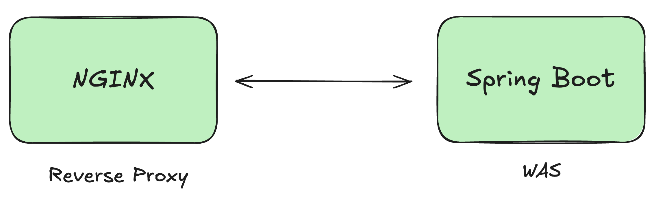 현재 API서버는 Nginx을 통해 Reverse Proxy 형태로 WAS를 가리키고 있다.