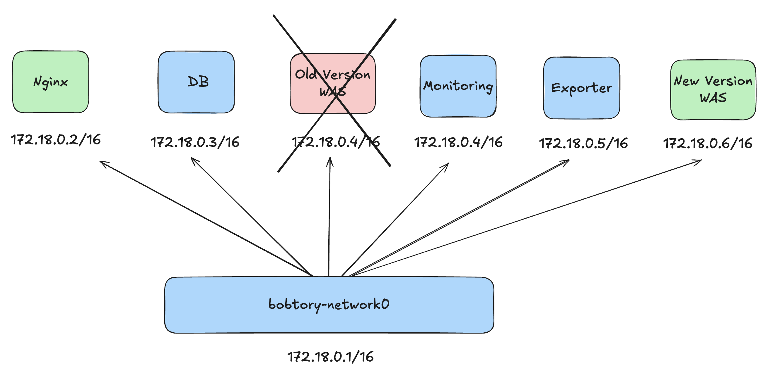 기존 배포 환경에서는 WAS 컨테이너만을 삭제 생성을 반복했었기 때문에 새로 생성된 컨테이너도 이전 컨테이너와 동일한 주소를 가져갈 수 있었다. (운이 좋았다)
