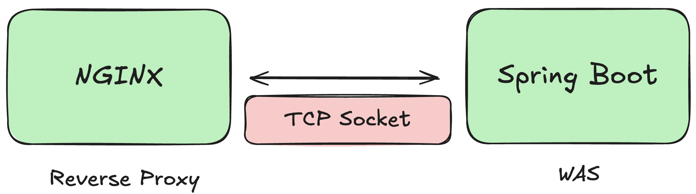 Nginx는 Reverse Proxy로 8080포트를 가리키고 있다. 따라서 요청은 받은 Nginx와 WAS사이에 TCP Socket이 생성 및 연결된다.